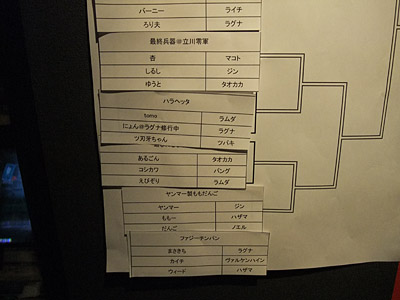 店舗予選の進行はバング使いの石田、カルル使いの客、レディースプレイヤーでタオカカ使いのさう等、